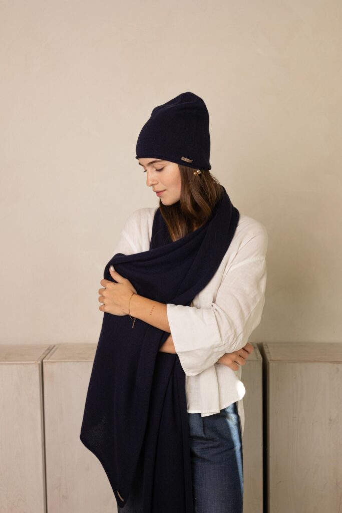 Megztas gobtuvas-mova tobula alternatyva kepurei ir šalikui. Pagamintas iš aukščiausios kokybės itališkų siūlų su kašmyru. Kašmyras suteikai gaminiui minkštumo. Merino vilna pasižymi antialerginėmis ir termoreguliacinėmis savybėmis, todėl tinka jautrią oda turintiems.  Gaminiai su kašmyro vilna yra švelnūs, šilti ir ilgaamžiški, gerai nešiojasi.