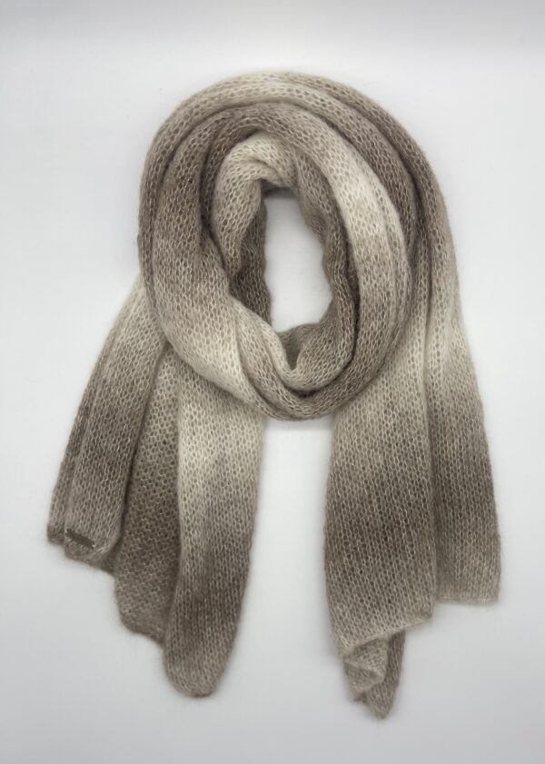 Elegantiškas, ypatingai švelnus ir minkštas šalis pagamintas iš aukštos kokybės baby alpakų ir moheros vilnos. Šis tobulas vilnų derinys leidžia sukurti ilgaamžišką, lengvą ir labai šiltą gaminį, kuris gali būti nešiojamas kaip šalikas ar šalis ant pečių.