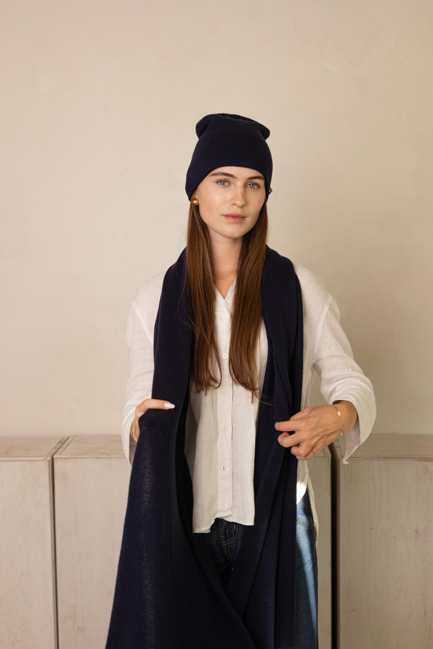 Klasikinis megztas šaliko ir kepurės komplektas iš aukščiausios kokybės itališkų siūlų su kašmyru. Kašmyras suteikai gaminiui minkštumo. Merino vilna pasižymi antialerginėmis ir termoreguliacinėmis savybėmis, todėl tinka jautrią oda turintiems. Gaminiai su kašmyro vilna yra švelnūs, šilti ir ilgaamžiški, gerai nešiojasi.