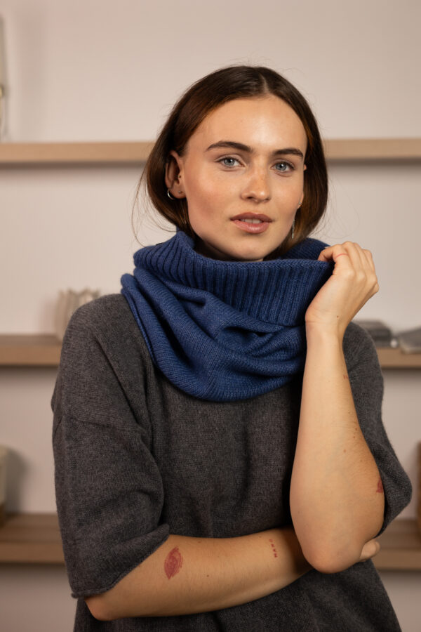 Megztas gobtuvas-mova iš aukščiausios kokybės itališkų siūlų su kašmyru ir šilku . Kašmyras suteikai gaminiui minkštumo, šilkas subtilų žvilgesį. Nedirgina odos. Gaminiai su kašmyro vilna ir šilku yra švelnūs, šilti ir ilgaamžiški, gerai nešiojasi.