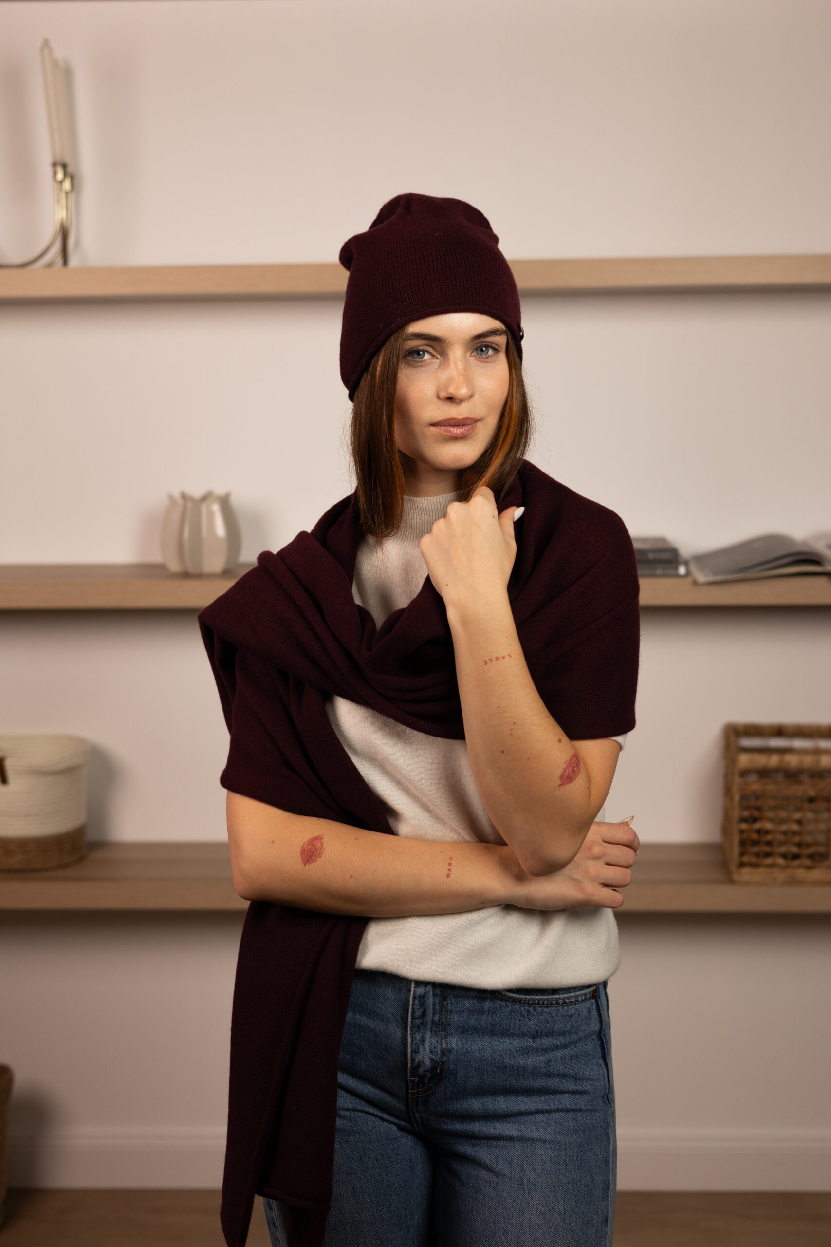 Klasikinis megztas šaliko ir kepurės komplektas iš aukščiausios kokybės itališkų siūlų su kašmyru. Kašmyras suteikai gaminiui minkštumo. Merino vilna pasižymi antialerginėmis ir termoreguliacinėmis savybėmis, todėl tinka jautrią oda turintiems. Gaminiai su kašmyro vilna yra švelnūs, šilti ir ilgaamžiški, gerai nešiojasi.