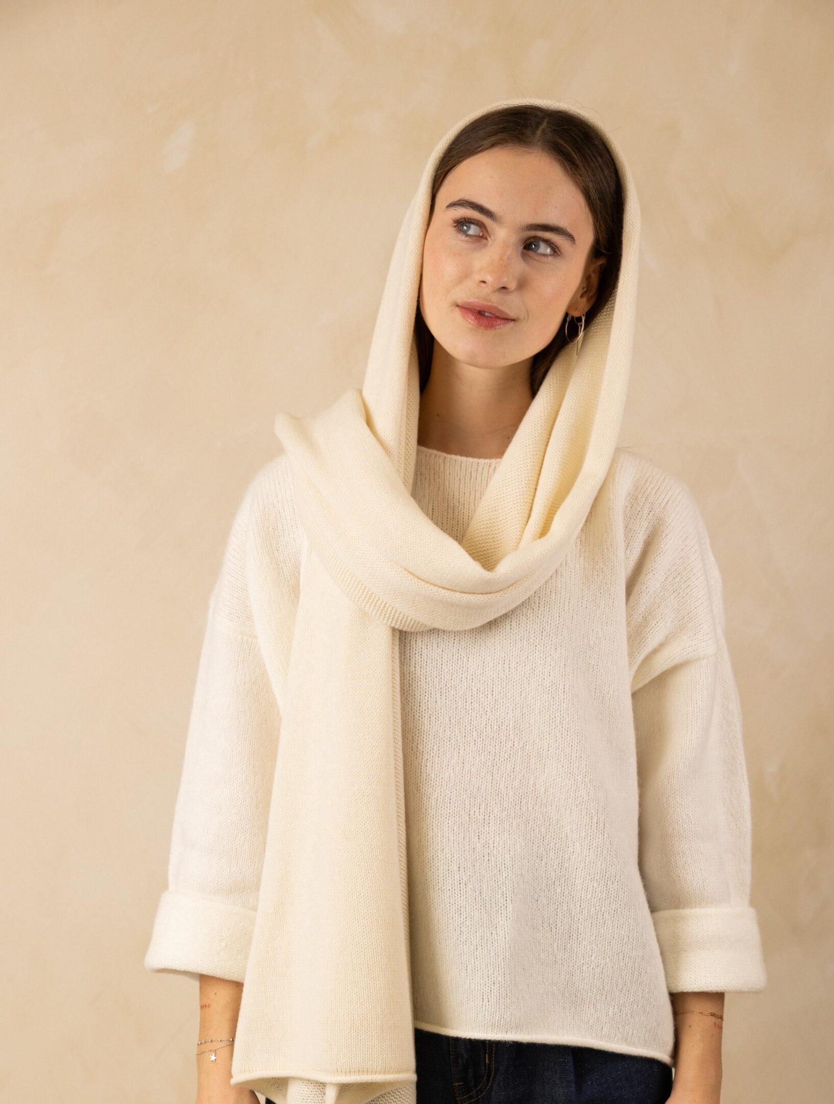 5. Baltas šampano spalvos šalikas su kašmyru