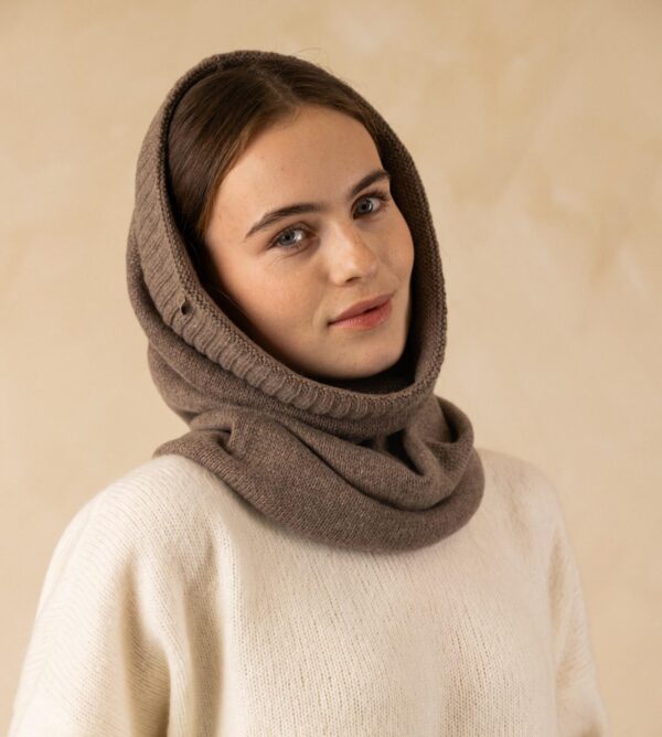 Megztas gobtuvas-mova iš aukščiausios kokybės itališkų siūlų su kašmyru. Kašmyras suteikai gaminiui minkštumo. Merino vilna pasižymi antialerginėmis ir termoreguliacinėmis savybėmis, todėl tinka jautrią oda turintiems. Gaminiai su kašmyro vilna yra švelnūs, šilti ir ilgaamžiški, gerai nešiojasi.
