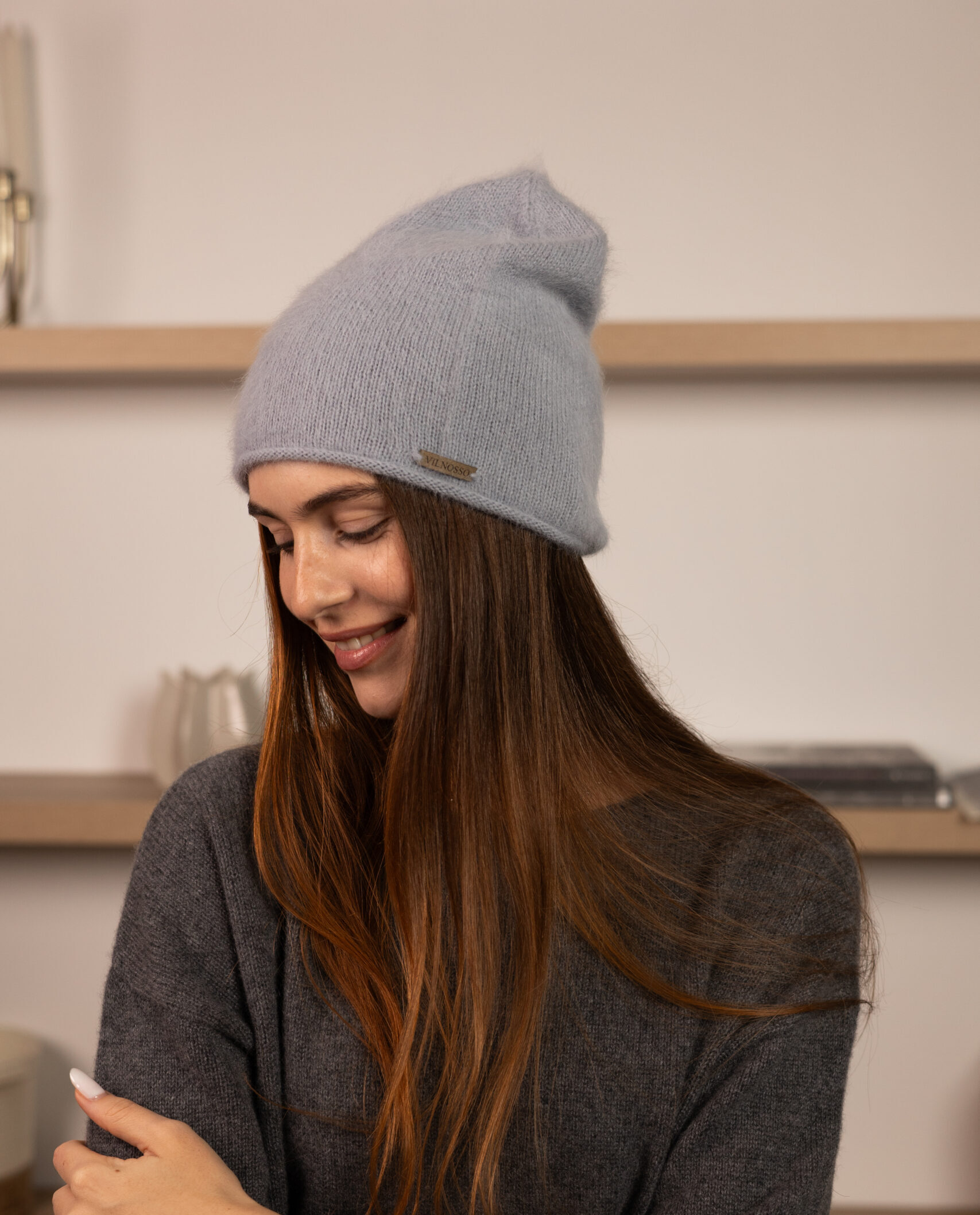 Klasikinė megzta kepurė iš aukščiausios kokybės itališkų angoros siūlų. Gaminiai iš anogoros triušio vilnos yra labai švelnūs, minkšti ir šilti.